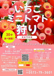 ここしか味わえないいちご狩+ミニトマト狩りを楽しんでください。